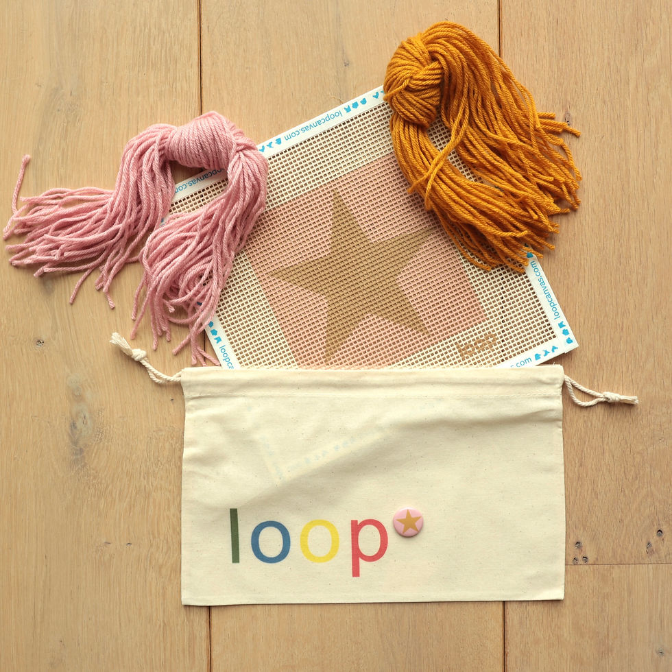 Our loop beginner kits come in a 7 mesh canvas that is perfect for new needlepointers and very fun to stitch. It's great for beginners, but we find that expert loopers love them just as much if not more than our 10 mesh originals.